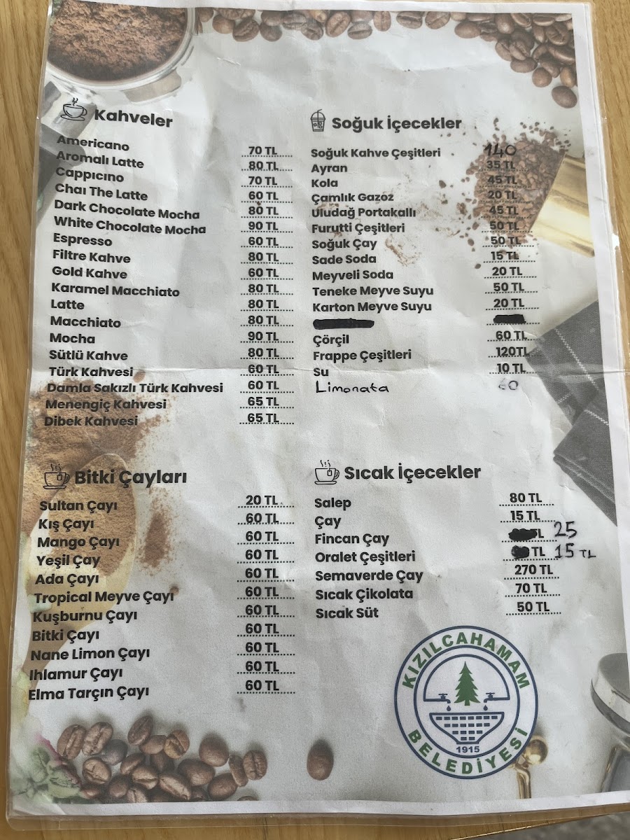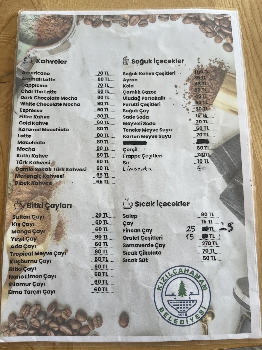 KIZILCAHAMAM BELEDİYESİ ÇAM KAFE Menu